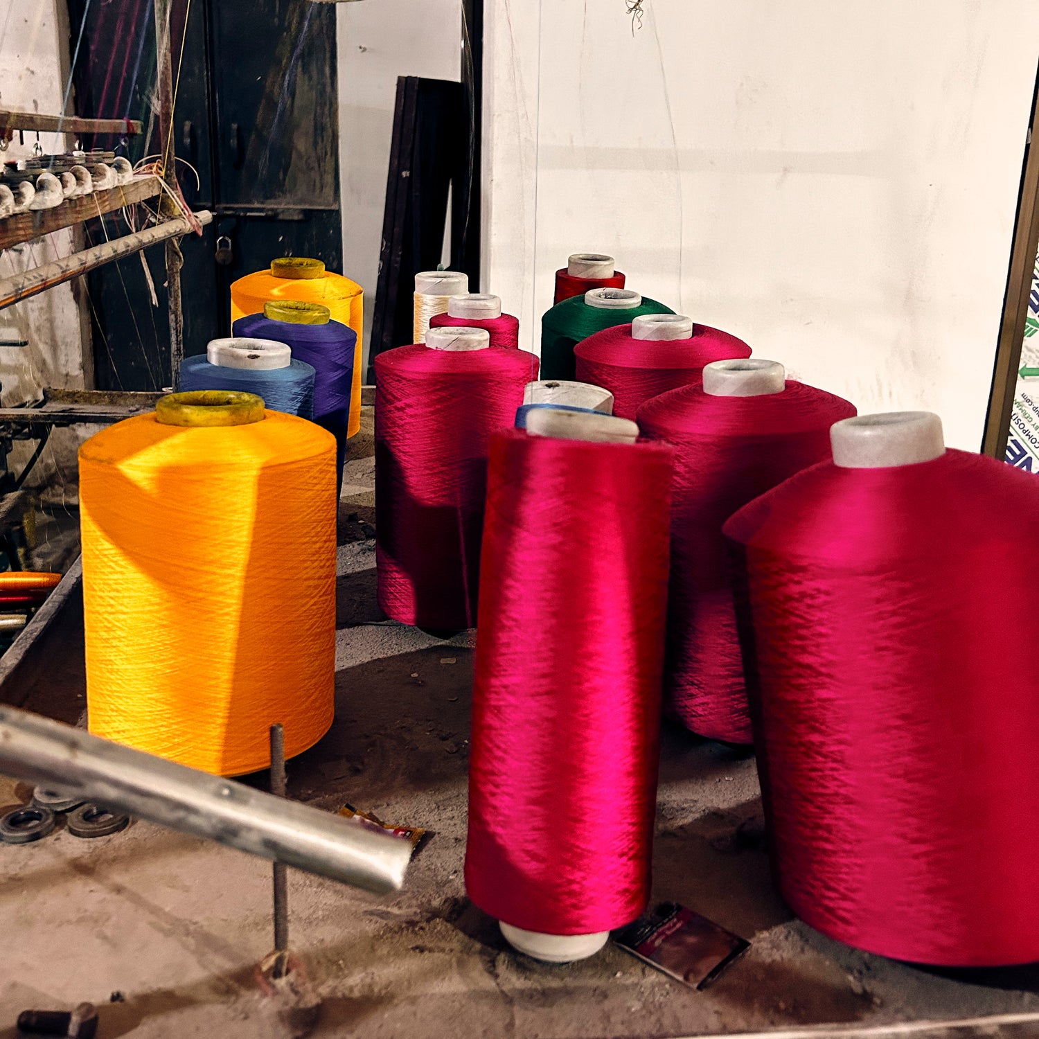 - REELING: The dyed yarns are reeled to prepare them for weaving. This involves winding the yarn onto bobbins to ensure they are ready for the loom.